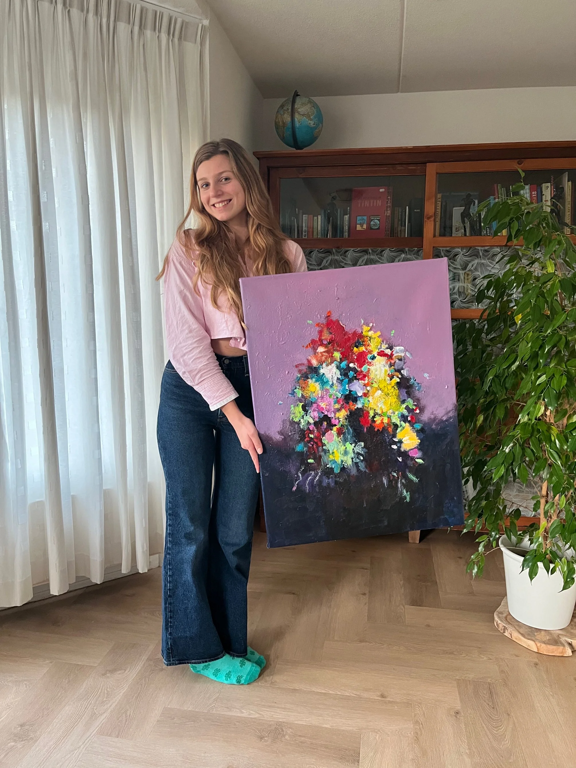 The beautiful organic abstract works of Geesien Postema are inspired by the beauty of nature and landscapes. The works are characterized by bright color palettes and spontaneous mark making. The vibrant paintings take you away to a lush garden, evoking positive energy and a calming aura.
